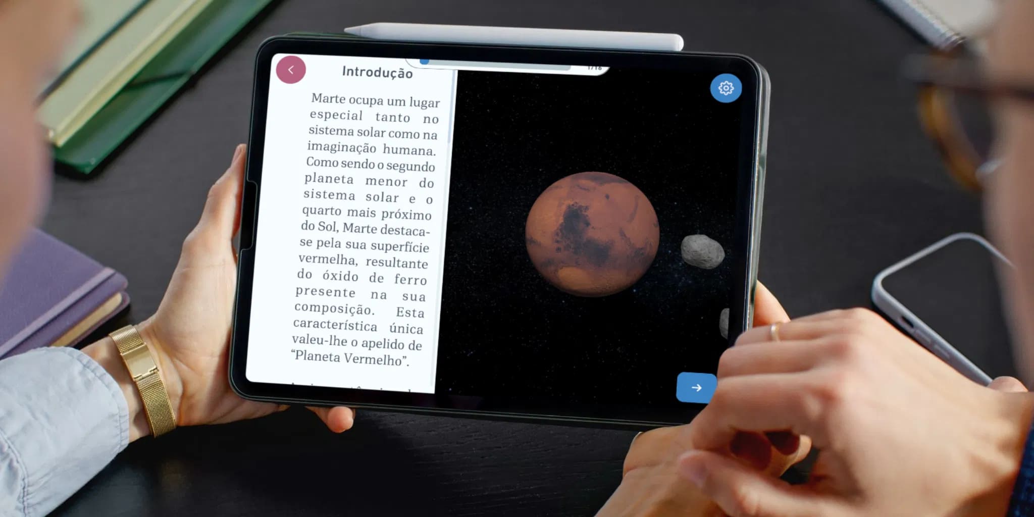 • Planos de aula prontos de todas as disciplinas exploradas no aplicativo como sugestão para uso na sala de aula.